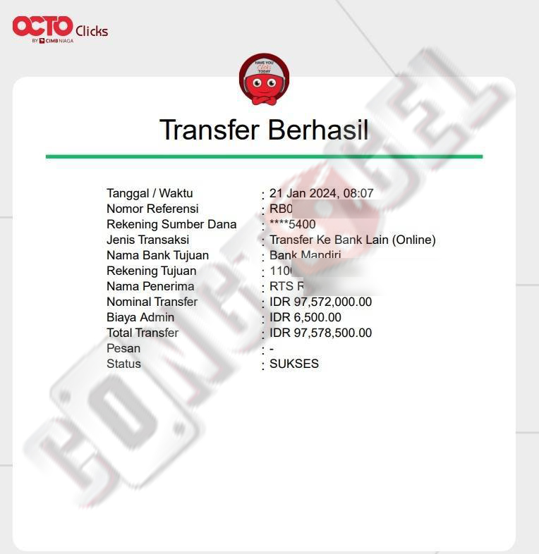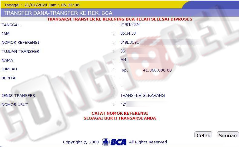 Dibawah ini merupakan bukti transfer pembayaran JP kemenangan member CONGTOGEL. Ini membuktikan jika kami adalah bandar togel yang sangat kredible dan dapat dipercaya.