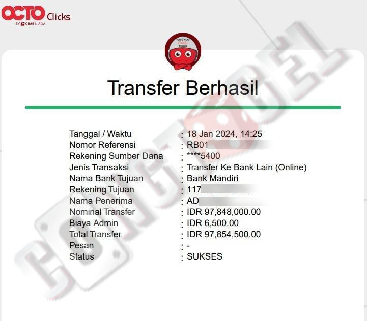 Dibawah ini merupakan bukti transfer pembayaran JP kemenangan member CONGTOGEL. Ini membuktikan jika kami adalah bandar togel yang sangat kredible dan dapat dipercaya.
