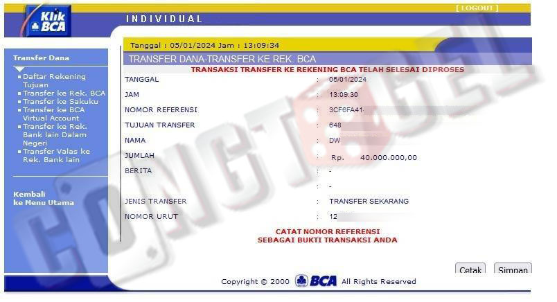 Dibawah ini merupakan bukti transfer pembayaran JP kemenangan member CONGTOGEL. Ini membuktikan jika kami adalah bandar togel yang sangat kredible dan dapat dipercaya.