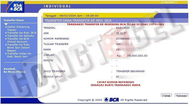 Dibawah ini merupakan bukti transfer pembayaran JP kemenangan member CONGTOGEL. Ini membuktikan jika kami adalah bandar togel yang sangat kredible dan dapat dipercaya.