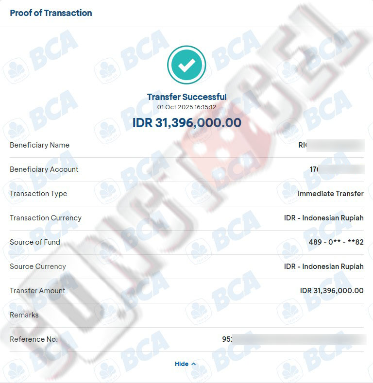 Dibawah ini merupakan bukti transfer pembayaran JP kemenangan member CONGTOGEL. Ini membuktikan jika kami adalah bandar togel yang sangat kredible dan dapat dipercaya.