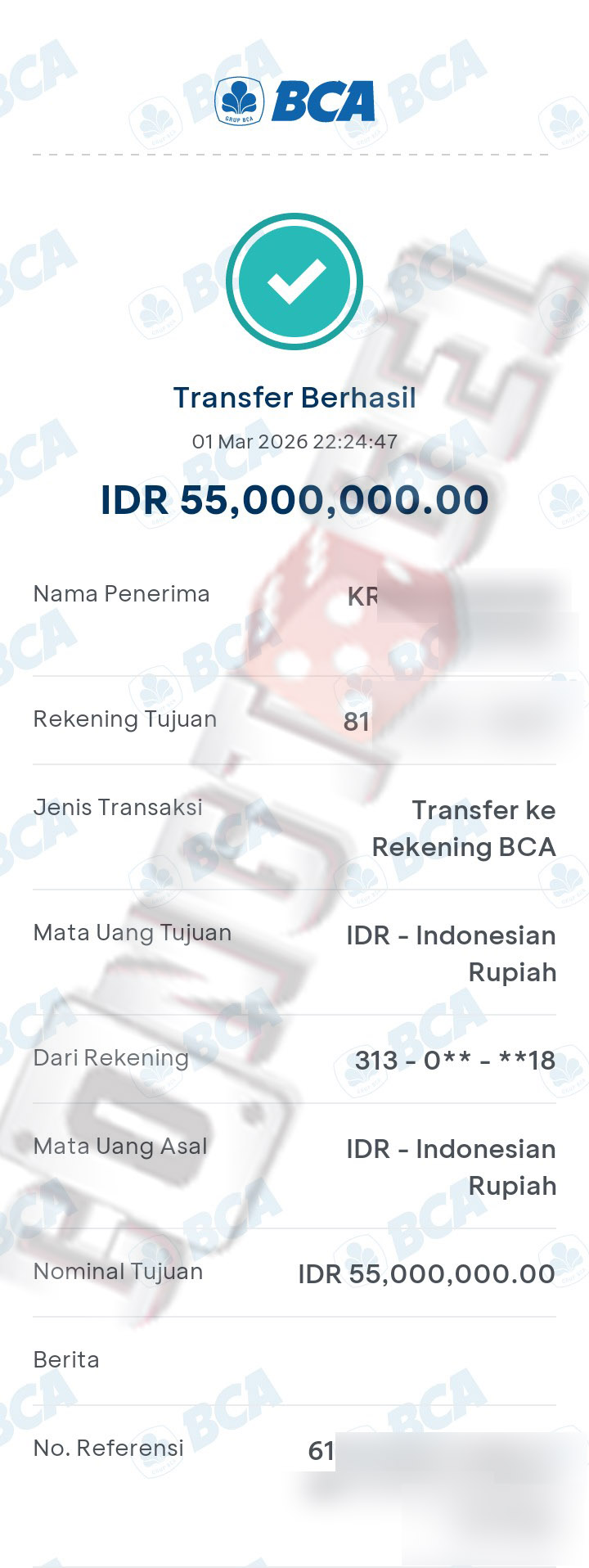 Dibawah ini merupakan bukti transfer pembayaran JP kemenangan member CONGTOGEL. Ini membuktikan jika kami adalah bandar togel yang sangat kredible dan dapat dipercaya.