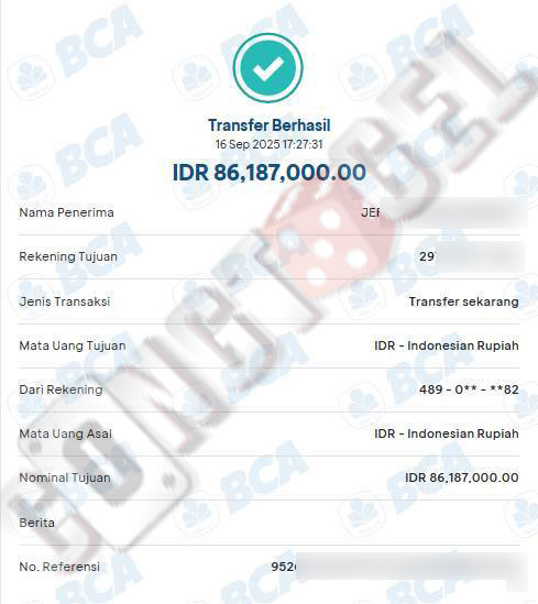 Dibawah ini merupakan bukti transfer pembayaran JP kemenangan member CONGTOGEL. Ini membuktikan jika kami adalah bandar togel yang sangat kredible dan dapat dipercaya.