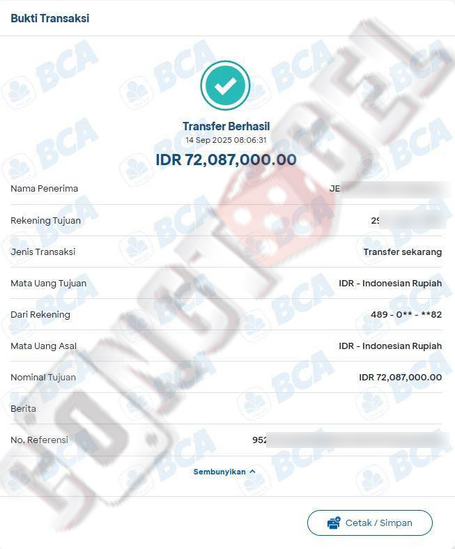 Dibawah ini merupakan bukti transfer pembayaran JP kemenangan member CONGTOGEL. Ini membuktikan jika kami adalah bandar togel yang sangat kredible dan dapat dipercaya.