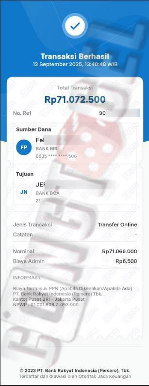 Dibawah ini merupakan bukti transfer pembayaran JP kemenangan member CONGTOGEL. Ini membuktikan jika kami adalah bandar togel yang sangat kredible dan dapat dipercaya.