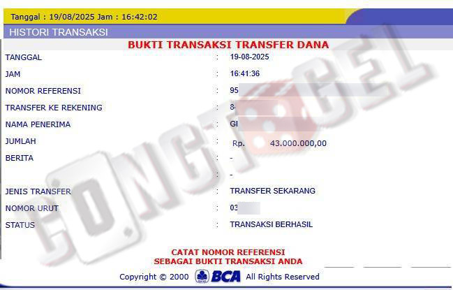 Dibawah ini merupakan bukti transfer pembayaran JP kemenangan member CONGTOGEL. Ini membuktikan jika kami adalah bandar togel yang sangat kredible dan dapat dipercaya.
