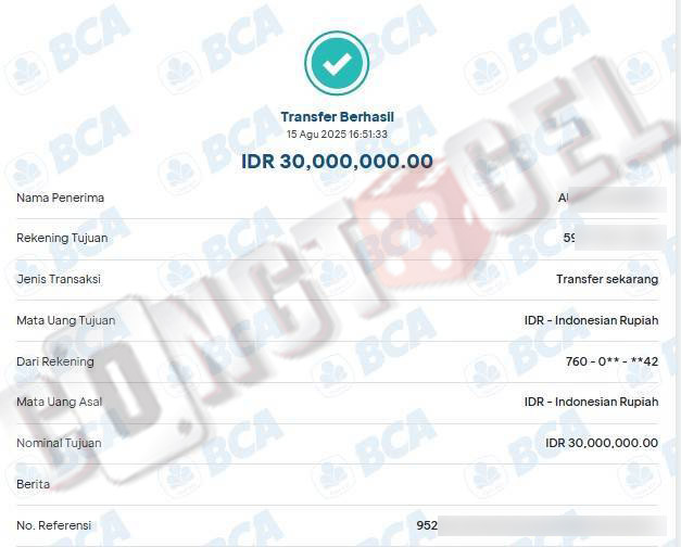 Dibawah ini merupakan bukti transfer pembayaran JP kemenangan member CONGTOGEL. Ini membuktikan jika kami adalah bandar togel yang sangat kredible dan dapat dipercaya.