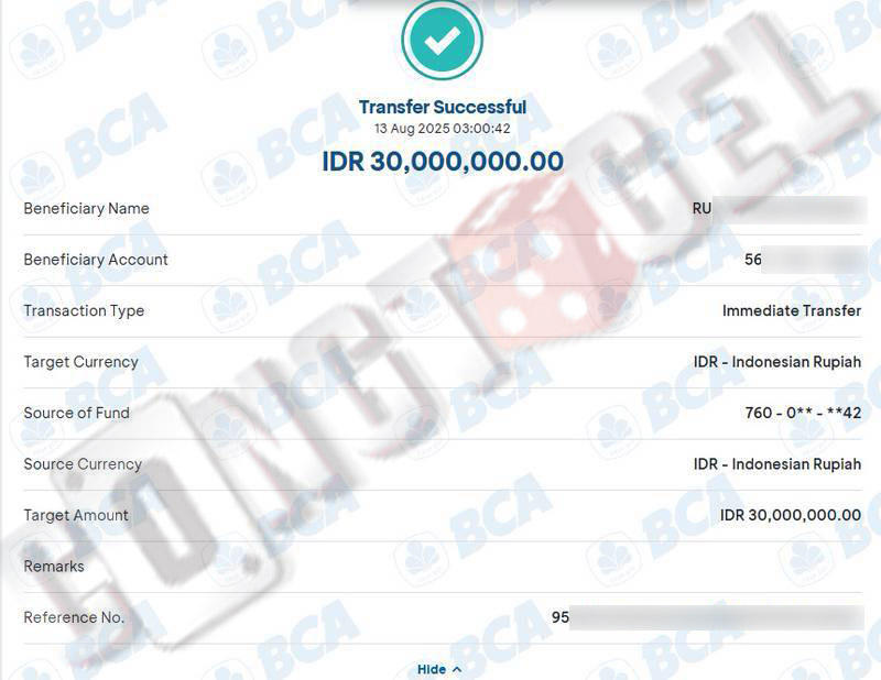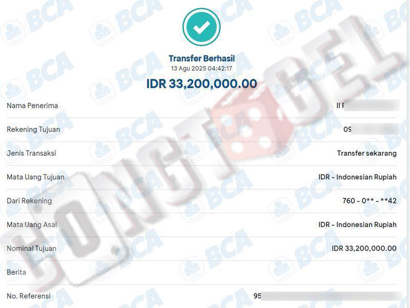 Dibawah ini merupakan bukti transfer pembayaran JP kemenangan member CONGTOGEL. Ini membuktikan jika kami adalah bandar togel yang sangat kredible dan dapat dipercaya.