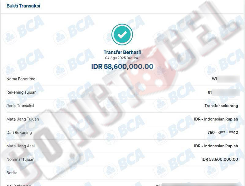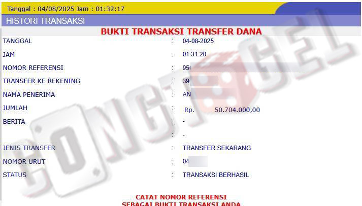 Dibawah ini merupakan bukti transfer pembayaran JP kemenangan member CONGTOGEL. Ini membuktikan jika kami adalah bandar togel yang sangat kredible dan dapat dipercaya.