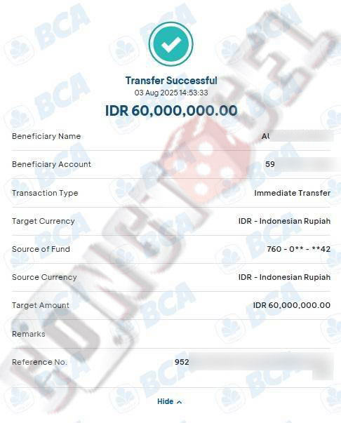 Dibawah ini merupakan bukti transfer pembayaran JP kemenangan member CONGTOGEL. Ini membuktikan jika kami adalah bandar togel yang sangat kredible dan dapat dipercaya.