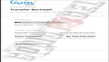 Dibawah ini merupakan bukti transfer pembayaran JP kemenangan member CONGTOGEL. Ini membuktikan jika kami adalah bandar togel yang sangat kredible dan dapat dipercaya.