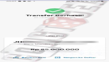 Dibawah ini merupakan bukti transfer pembayaran JP kemenangan member CONGTOGEL. Ini membuktikan jika kami adalah bandar togel yang sangat kredible dan dapat dipercaya.