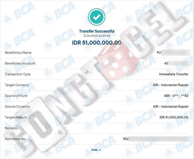 Dibawah ini merupakan bukti transfer pembayaran JP kemenangan member CONGTOGEL. Ini membuktikan jika kami adalah bandar togel yang sangat kredible dan dapat dipercaya.