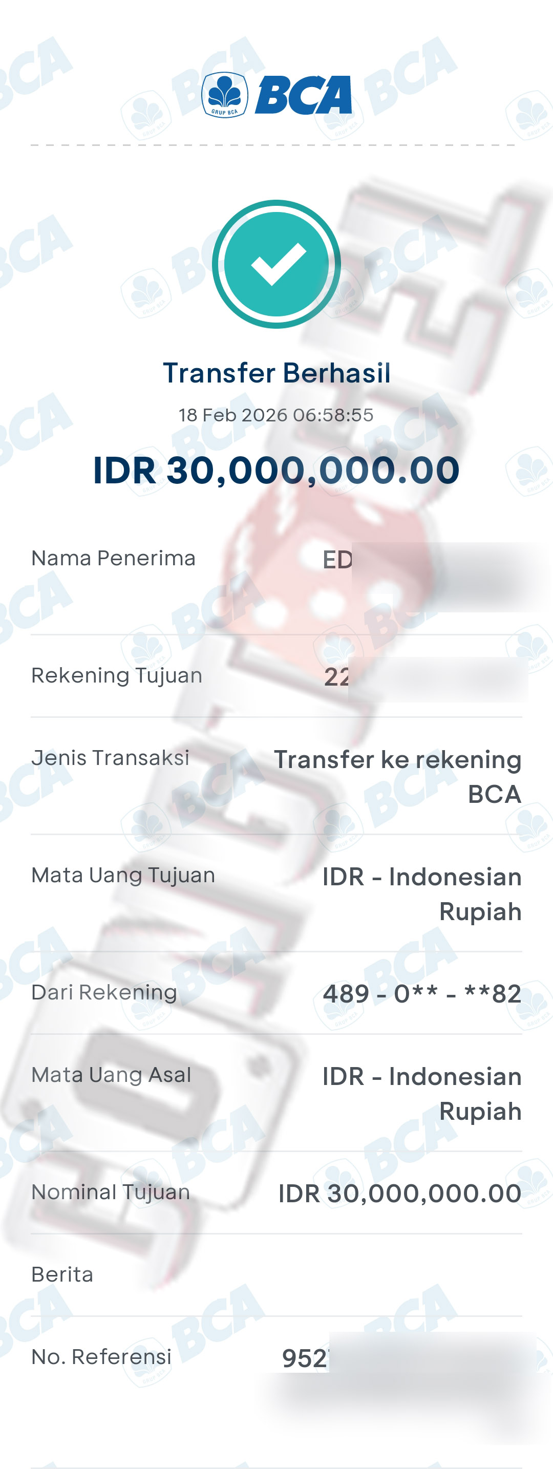 Dibawah ini merupakan bukti transfer pembayaran JP kemenangan member CONGTOGEL. Ini membuktikan jika kami adalah bandar togel yang sangat kredible dan dapat dipercaya.
