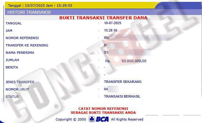 Dibawah ini merupakan bukti transfer pembayaran JP kemenangan member CONGTOGEL. Ini membuktikan jika kami adalah bandar togel yang sangat kredible dan dapat dipercaya.