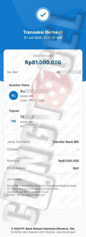 Dibawah ini merupakan bukti transfer pembayaran JP kemenangan member CONGTOGEL. Ini membuktikan jika kami adalah bandar togel yang sangat kredible dan dapat dipercaya.