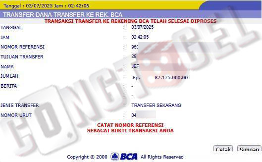 Dibawah ini merupakan bukti transfer pembayaran JP kemenangan member CONGTOGEL. Ini membuktikan jika kami adalah bandar togel yang sangat kredible dan dapat dipercaya.