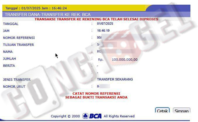 Dibawah ini merupakan bukti transfer pembayaran JP kemenangan member CONGTOGEL. Ini membuktikan jika kami adalah bandar togel yang sangat kredible dan dapat dipercaya.