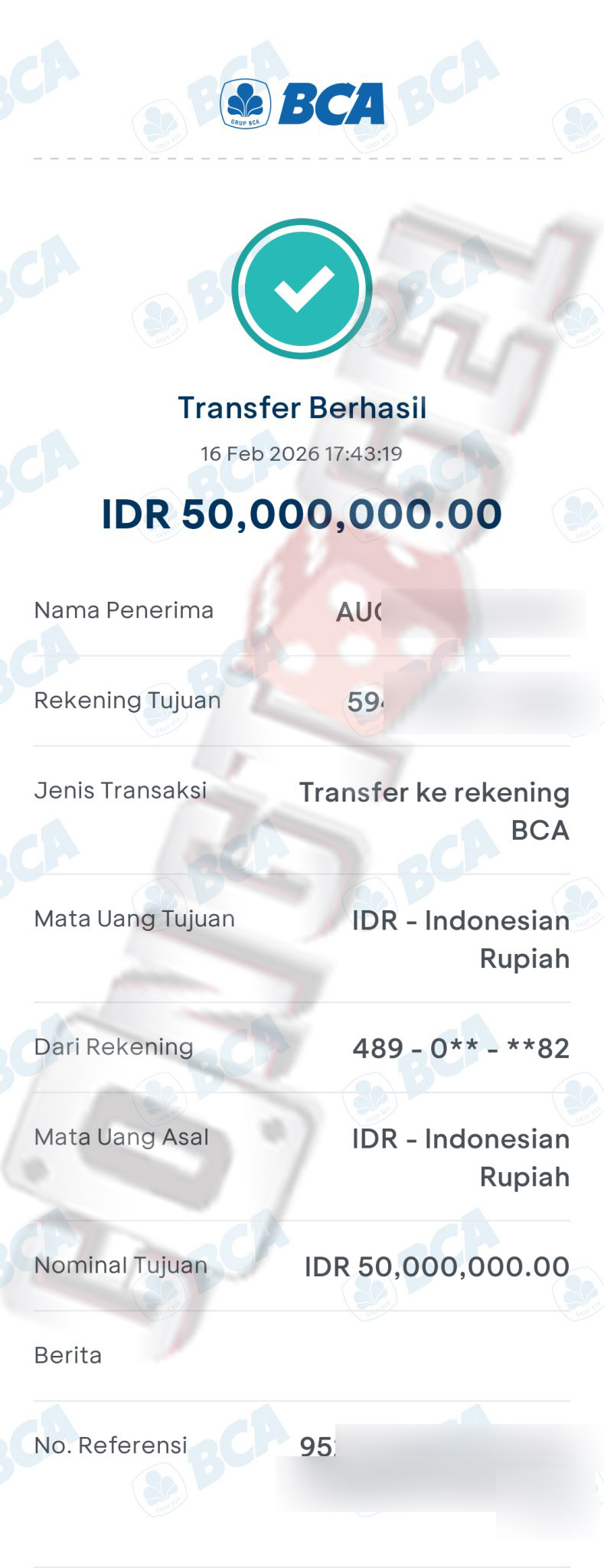 Dibawah ini merupakan bukti transfer pembayaran JP kemenangan member CONGTOGEL. Ini membuktikan jika kami adalah bandar togel yang sangat kredible dan dapat dipercaya.