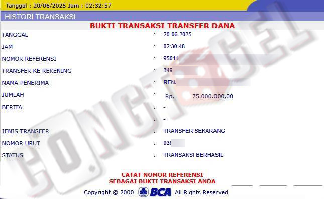 Dibawah ini merupakan bukti transfer pembayaran JP kemenangan member CONGTOGEL. Ini membuktikan jika kami adalah bandar togel yang sangat kredible dan dapat dipercaya.