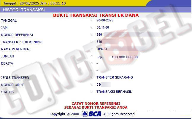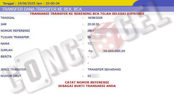 Dibawah ini merupakan bukti transfer pembayaran JP kemenangan member CONGTOGEL. Ini membuktikan jika kami adalah bandar togel yang sangat kredible dan dapat dipercaya.