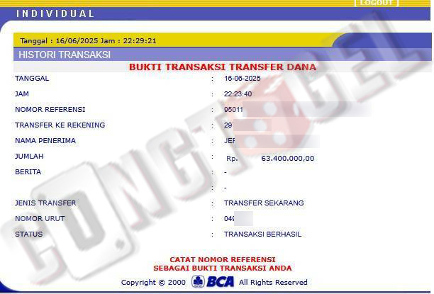 Dibawah ini merupakan bukti transfer pembayaran JP kemenangan member CONGTOGEL. Ini membuktikan jika kami adalah bandar togel yang sangat kredible dan dapat dipercaya.