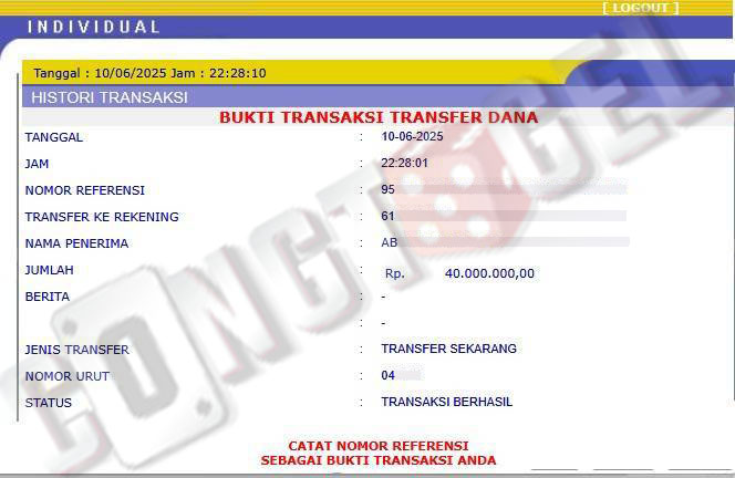 Dibawah ini merupakan bukti transfer pembayaran JP kemenangan member CONGTOGEL. Ini membuktikan jika kami adalah bandar togel yang sangat kredible dan dapat dipercaya.