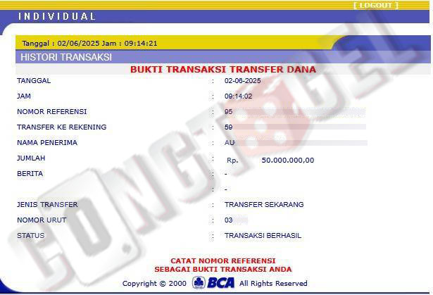 Dibawah ini merupakan bukti transfer pembayaran JP kemenangan member CONGTOGEL. Ini membuktikan jika kami adalah bandar togel yang sangat kredible dan dapat dipercaya.