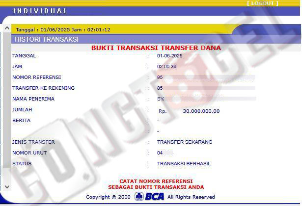 Dibawah ini merupakan bukti transfer pembayaran JP kemenangan member CONGTOGEL. Ini membuktikan jika kami adalah bandar togel yang sangat kredible dan dapat dipercaya.