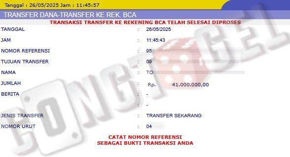 Dibawah ini merupakan bukti transfer pembayaran JP kemenangan member CONGTOGEL. Ini membuktikan jika kami adalah bandar togel yang sangat kredible dan dapat dipercaya.