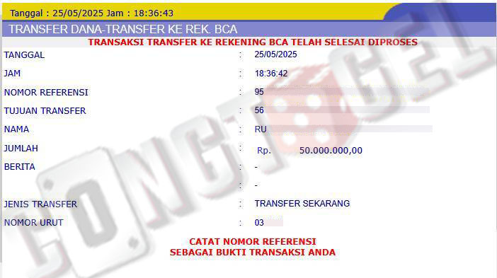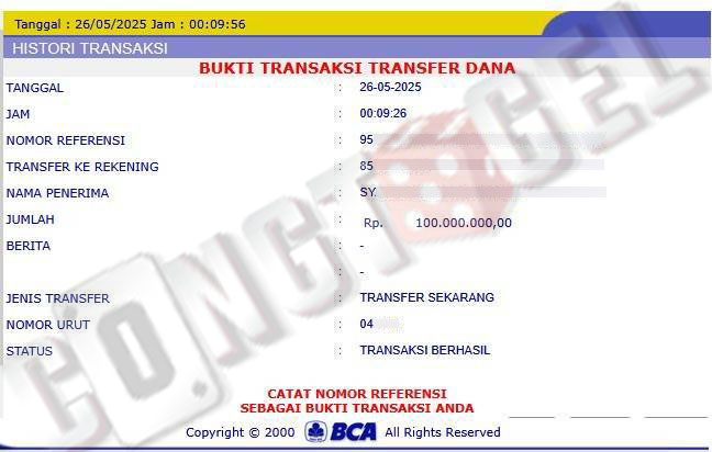 Dibawah ini merupakan bukti transfer pembayaran JP kemenangan member CONGTOGEL. Ini membuktikan jika kami adalah bandar togel yang sangat kredible dan dapat dipercaya.