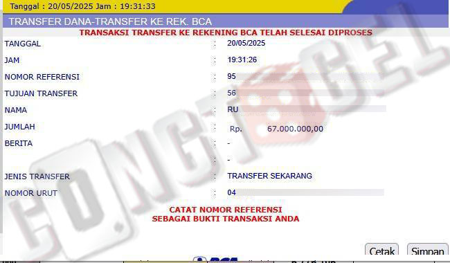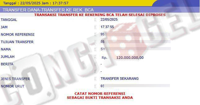 Dibawah ini merupakan bukti transfer pembayaran JP kemenangan member CONGTOGEL. Ini membuktikan jika kami adalah bandar togel yang sangat kredible dan dapat dipercaya.