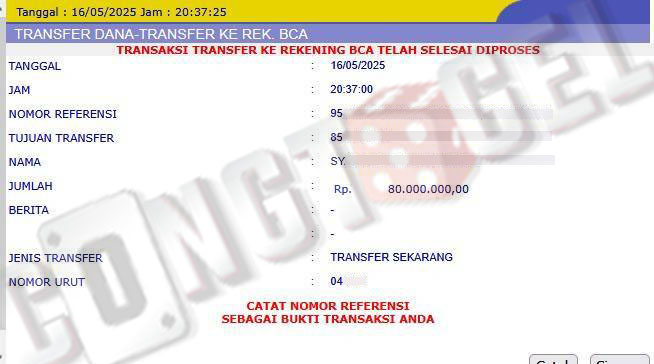 Dibawah ini merupakan bukti transfer pembayaran JP kemenangan member CONGTOGEL. Ini membuktikan jika kami adalah bandar togel yang sangat kredible dan dapat dipercaya.
