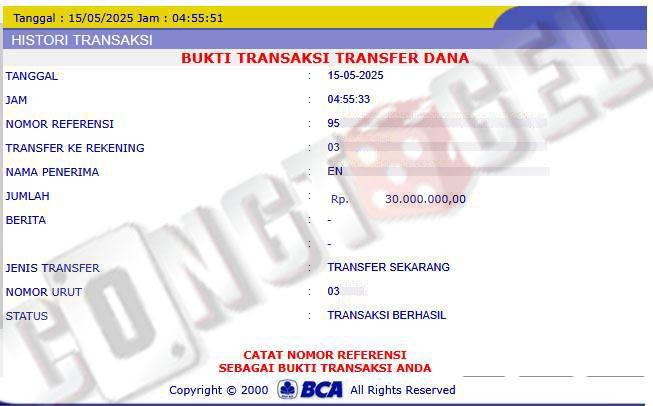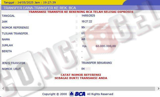 Dibawah ini merupakan bukti transfer pembayaran JP kemenangan member CONGTOGEL. Ini membuktikan jika kami adalah bandar togel yang sangat kredible dan dapat dipercaya.