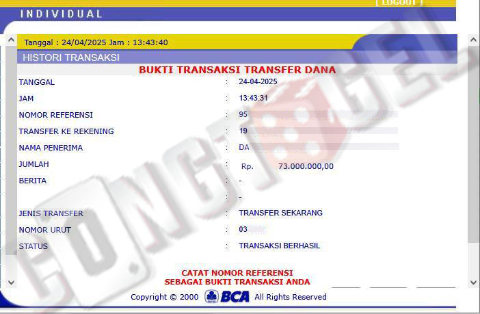 Dibawah ini merupakan bukti transfer pembayaran JP kemenangan member CONGTOGEL. Ini membuktikan jika kami adalah bandar togel yang sangat kredible dan dapat dipercaya.
