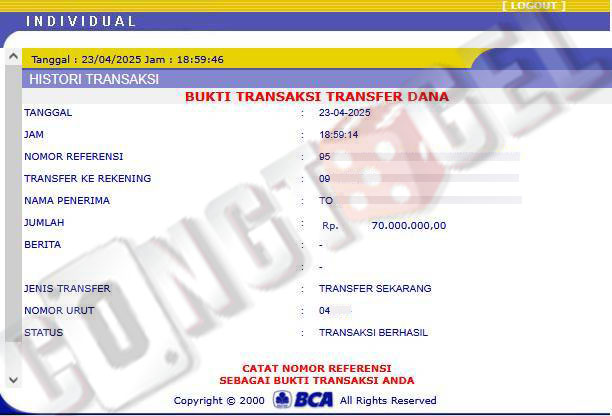 Dibawah ini merupakan bukti transfer pembayaran JP kemenangan member CONGTOGEL. Ini membuktikan jika kami adalah bandar togel yang sangat kredible dan dapat dipercaya.