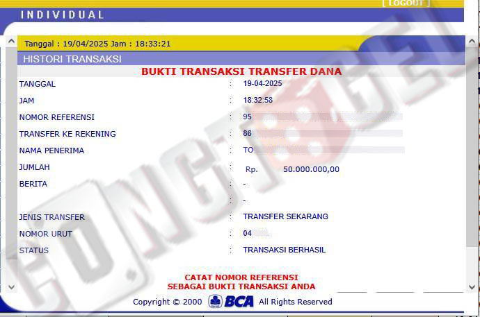 Dibawah ini merupakan bukti transfer pembayaran JP kemenangan member CONGTOGEL. Ini membuktikan jika kami adalah bandar togel yang sangat kredible dan dapat dipercaya.