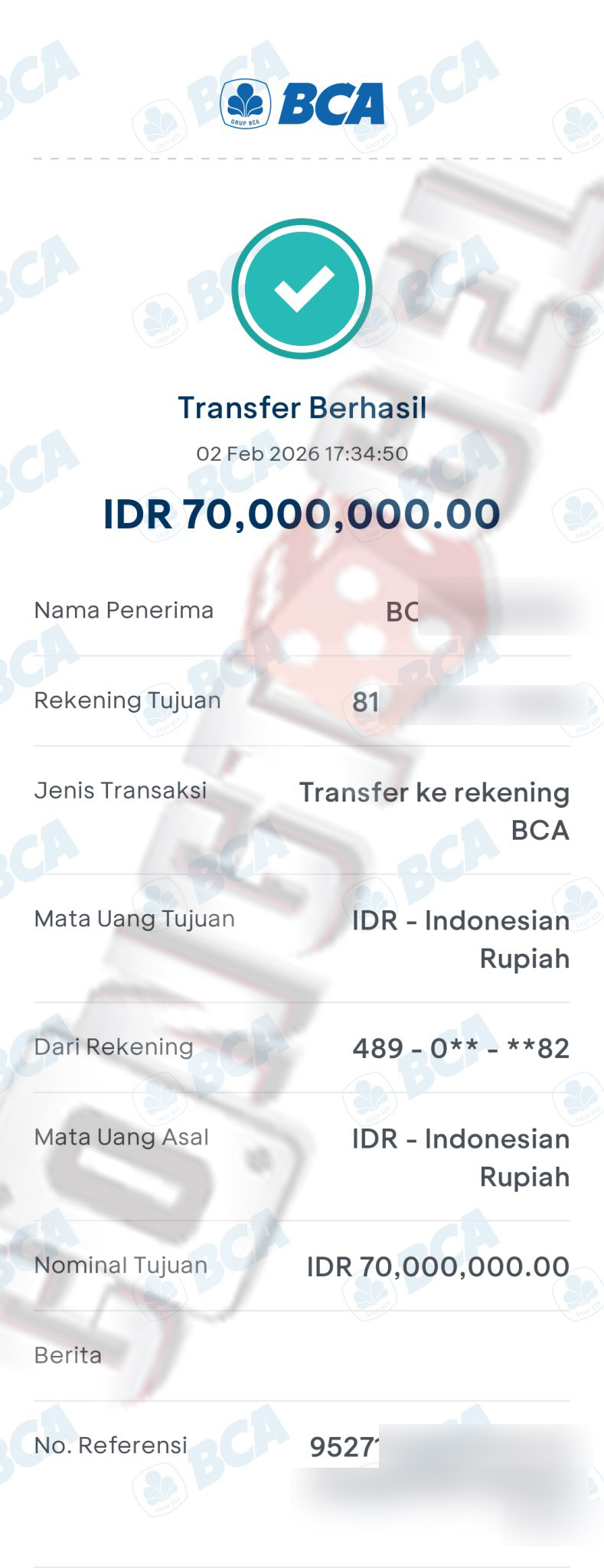 Dibawah ini merupakan bukti transfer pembayaran JP kemenangan member CONGTOGEL. Ini membuktikan jika kami adalah bandar togel yang sangat kredible dan dapat dipercaya.