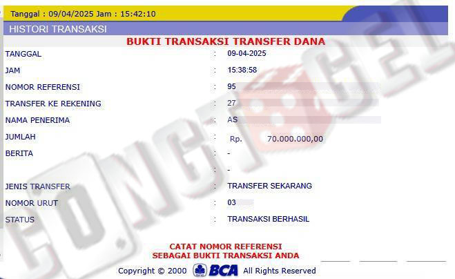 Dibawah ini merupakan bukti transfer pembayaran JP kemenangan member CONGTOGEL. Ini membuktikan jika kami adalah bandar togel yang sangat kredible dan dapat dipercaya.