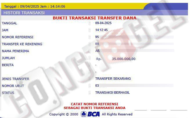 Dibawah ini merupakan bukti transfer pembayaran JP kemenangan member CONGTOGEL. Ini membuktikan jika kami adalah bandar togel yang sangat kredible dan dapat dipercaya.