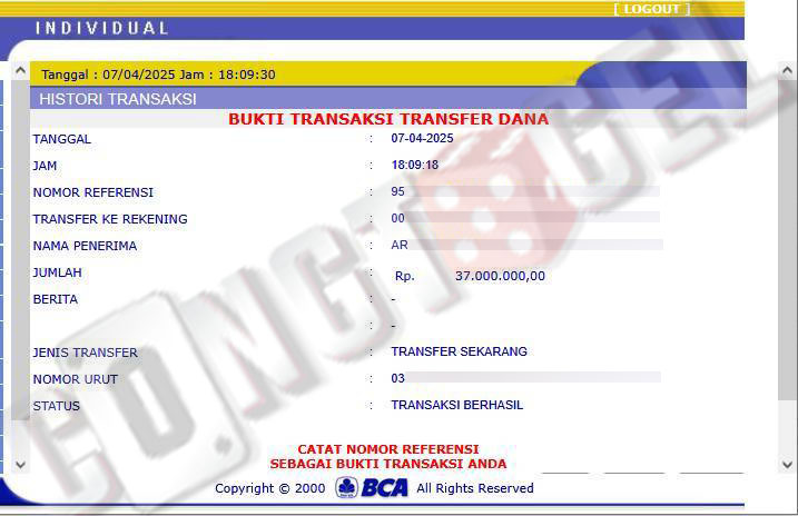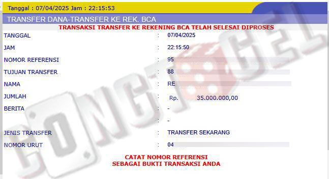 Dibawah ini merupakan bukti transfer pembayaran JP kemenangan member CONGTOGEL. Ini membuktikan jika kami adalah bandar togel yang sangat kredible dan dapat dipercaya.