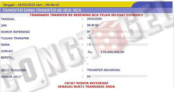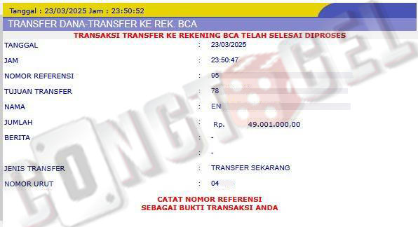 Dibawah ini merupakan bukti transfer pembayaran JP kemenangan member CONGTOGEL. Ini membuktikan jika kami adalah bandar togel yang sangat kredible dan dapat dipercaya.