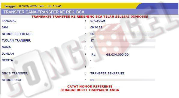 Dibawah ini merupakan bukti transfer pembayaran JP kemenangan member CONGTOGEL. Ini membuktikan jika kami adalah bandar togel yang sangat kredible dan dapat dipercaya.