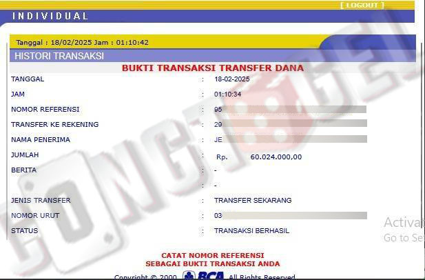 Dibawah ini merupakan bukti transfer pembayaran JP kemenangan member CONGTOGEL. Ini membuktikan jika kami adalah bandar togel yang sangat kredible dan dapat dipercaya.