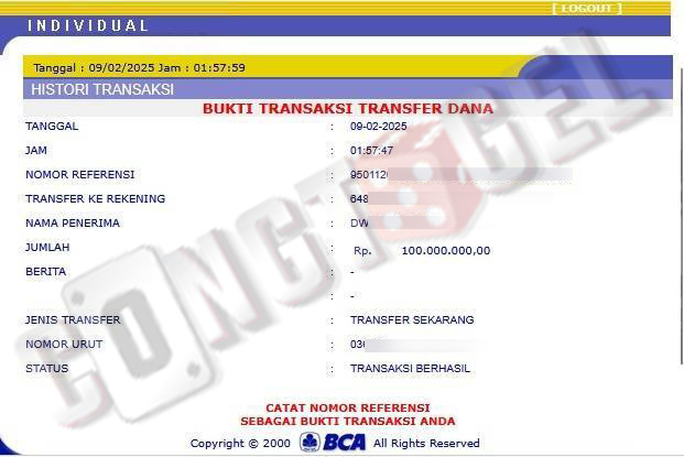 Dibawah ini merupakan bukti transfer pembayaran JP kemenangan member CONGTOGEL. Ini membuktikan jika kami adalah bandar togel yang sangat kredible dan dapat dipercaya.