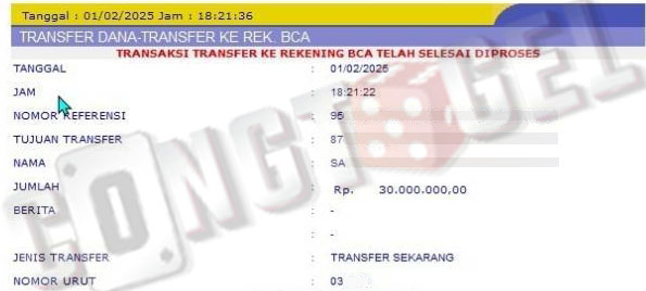 Dibawah ini merupakan bukti transfer pembayaran JP kemenangan member CONGTOGEL. Ini membuktikan jika kami adalah bandar togel yang sangat kredible dan dapat dipercaya.