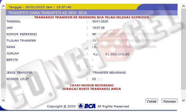 Dibawah ini merupakan bukti transfer pembayaran JP kemenangan member CONGTOGEL. Ini membuktikan jika kami adalah bandar togel yang sangat kredible dan dapat dipercaya.