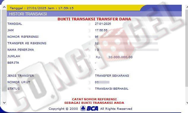 Dibawah ini merupakan bukti transfer pembayaran JP kemenangan member CONGTOGEL. Ini membuktikan jika kami adalah bandar togel yang sangat kredible dan dapat dipercaya.