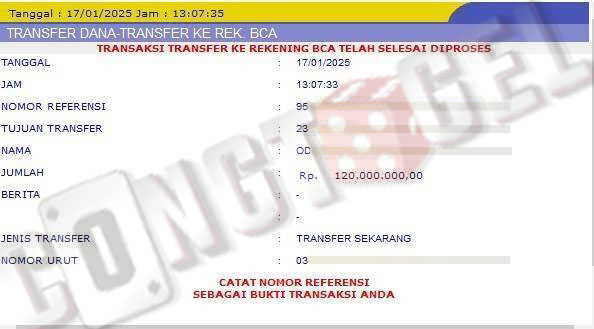 Dibawah ini merupakan bukti transfer pembayaran JP kemenangan member CONGTOGEL. Ini membuktikan jika kami adalah bandar togel yang sangat kredible dan dapat dipercaya.