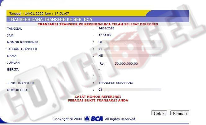 Dibawah ini merupakan bukti transfer pembayaran JP kemenangan member CONGTOGEL. Ini membuktikan jika kami adalah bandar togel yang sangat kredible dan dapat dipercaya.